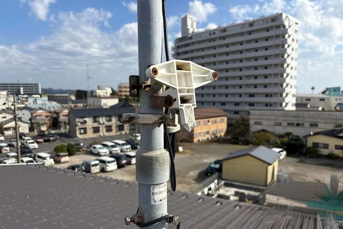屋根上アンテナの傾きが確認され、強風時の転倒やBS受信不可の可能性もあり、必要に応じて修理・交換をご提案しました。