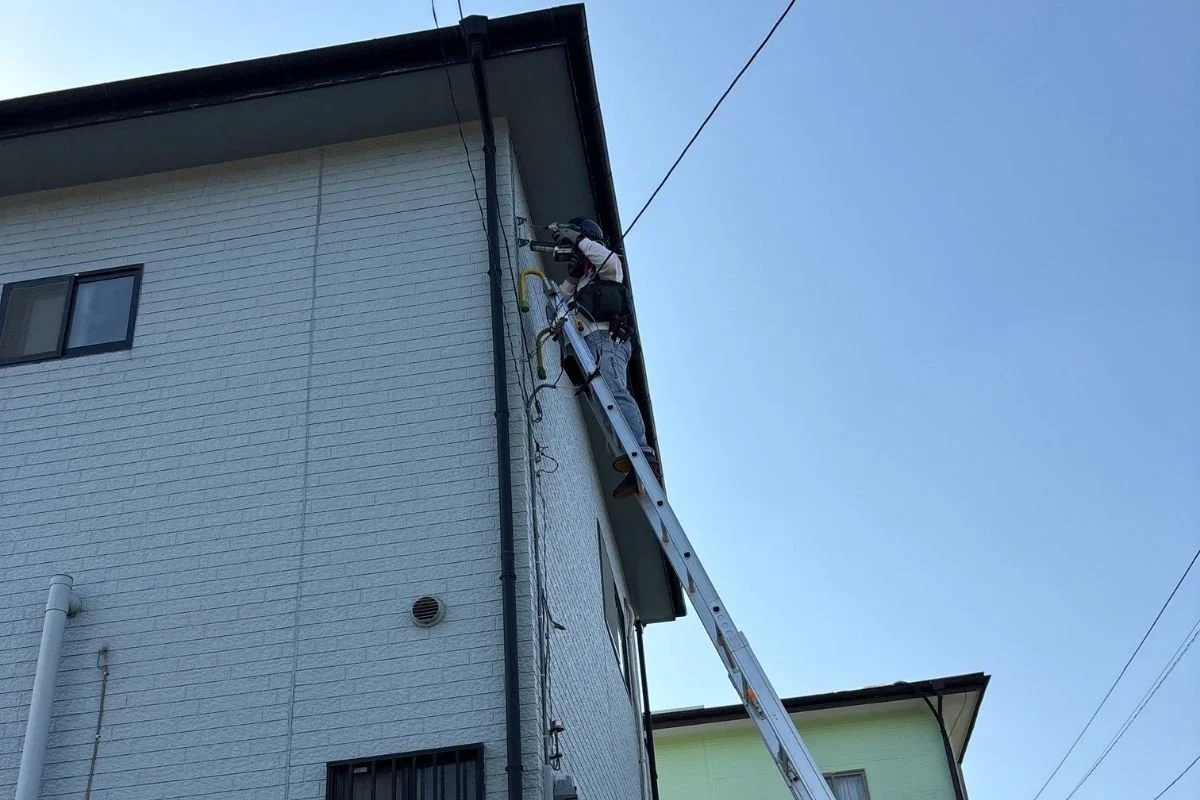 【君津市北子安】デザインアンテナの一部チャンネルが映らない症状を改善。1階壁面に設置されていたアンテナを2階屋根下へ移動し、方向・角度を細かく調整。全チャンネルが受信できるようになり、お客様にも大変喜んでいただけました。