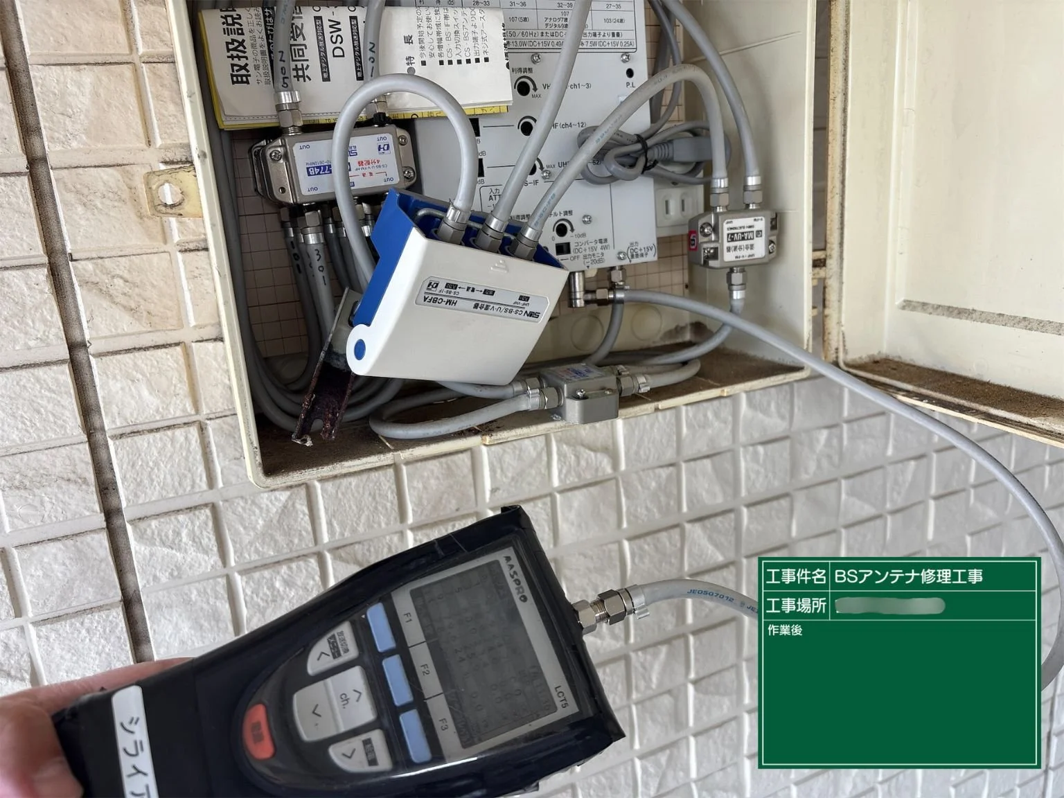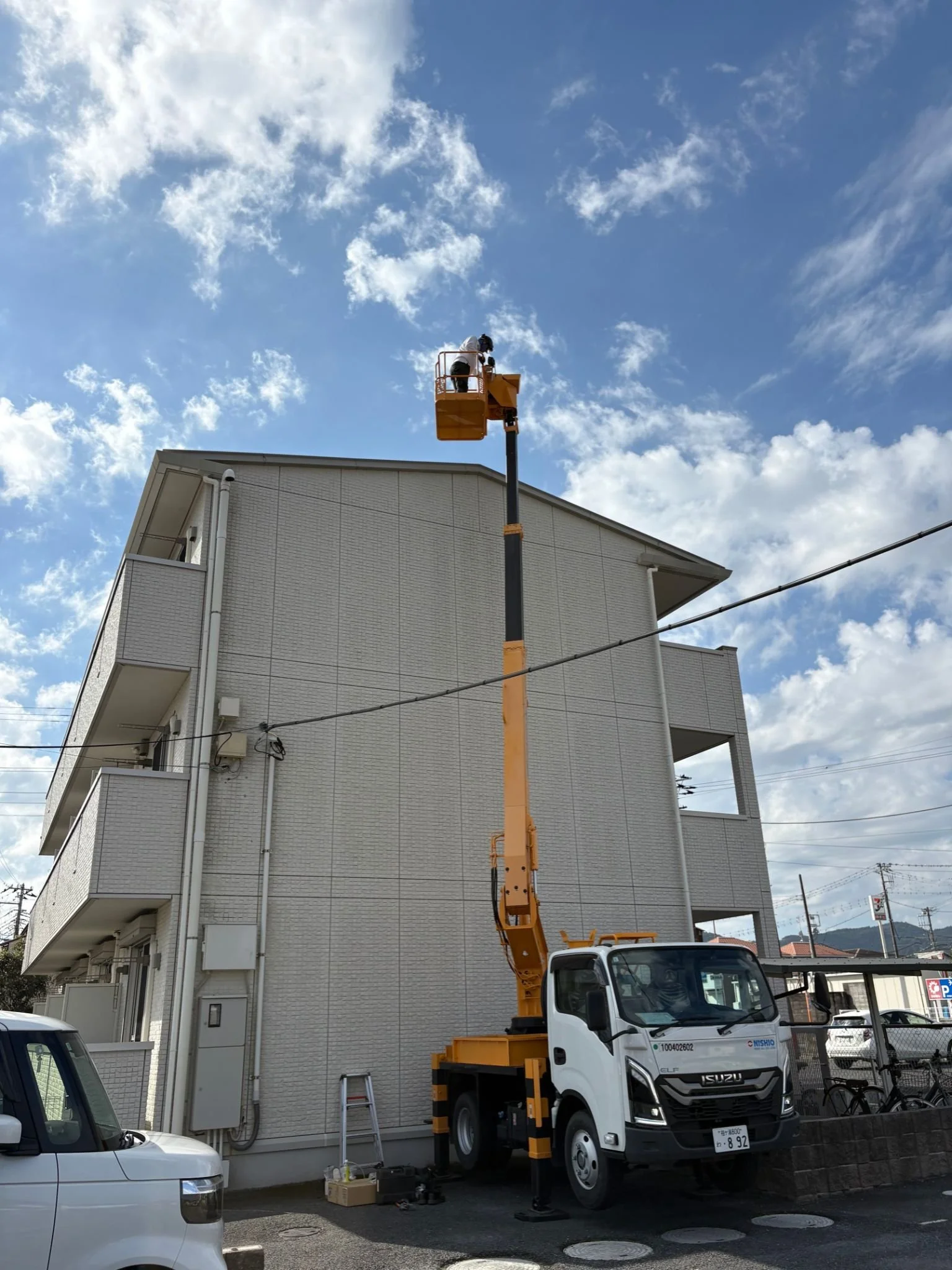 【千葉県鴨川市】BSアンテナの飛散トラブル修理(3階建て集合住宅 / 高所作業車対応)
